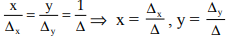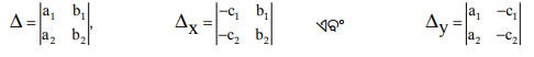 y =(c1a2 – c2a1) / (a1b2 -a2b1)