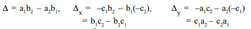 If two linear Simultaneous Equations are a1x + b1 y +c1 = 0 and a2x + b2 y +c2 = 0 then the solution is